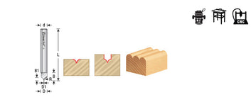 For lettering, engraving, signmaking, fluting and decorative trimming.Diameter (D)1/4Radius (R)1/8Cutting Height (B)5/16Shank (d)1/4Overall Length (L)2B11/8TypeSolid CarbideFlutes1D1.02"
