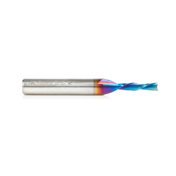 Spiral-flute bits combine a shearing action in cutting with an augering action in chip clearance. The shearing action yields an especially clean accurate cut while the augering action clears chips from the cut.The Down-Cut cuts from the surface down leaving a smooth edge at the surface.Special unique carbide grade increased clearance geometry and razor-sharp cutting edges with polished flutes provide a superior finish and longer tool life especially in abrasive materials. Great for production settings and excellent for creating grooves and dado cuts in particleboard, plywood and laminate. Primarily used on CNC machines and other automatic routers. Can be used with handheld and table-mounted portable routers.