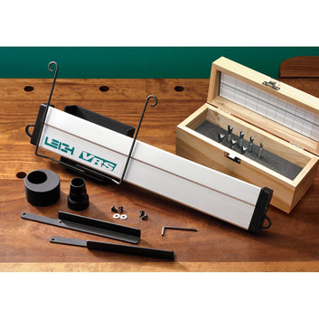 A Must-Have for Your Jig The process if routing dovetails on a Leigh jig creates a lot of fine saw dust, and quite quickly. The Vacuum and Router Support(VRS) helps to collect this as it is created. In addition to this, the Support part of the VRS gives the router support before, during and after the cutting process. On top of the VRS are the adjustable control arms, the router sits between these arms moving the dust chute with the router. This means the duct chute is always where the cutting is being done, providing the most effective dust extraction possible. The VRS has an adaptor to accept hose sizes of either 1” of 2-1/2”, common to most vacuum systems. This accessory kit combines the VRS and a set of router bits at a great KIT price. LGH-VRS12 and LGH-16078 bit set make up the LGH-AC12 for the Leigh Super 12 jig
