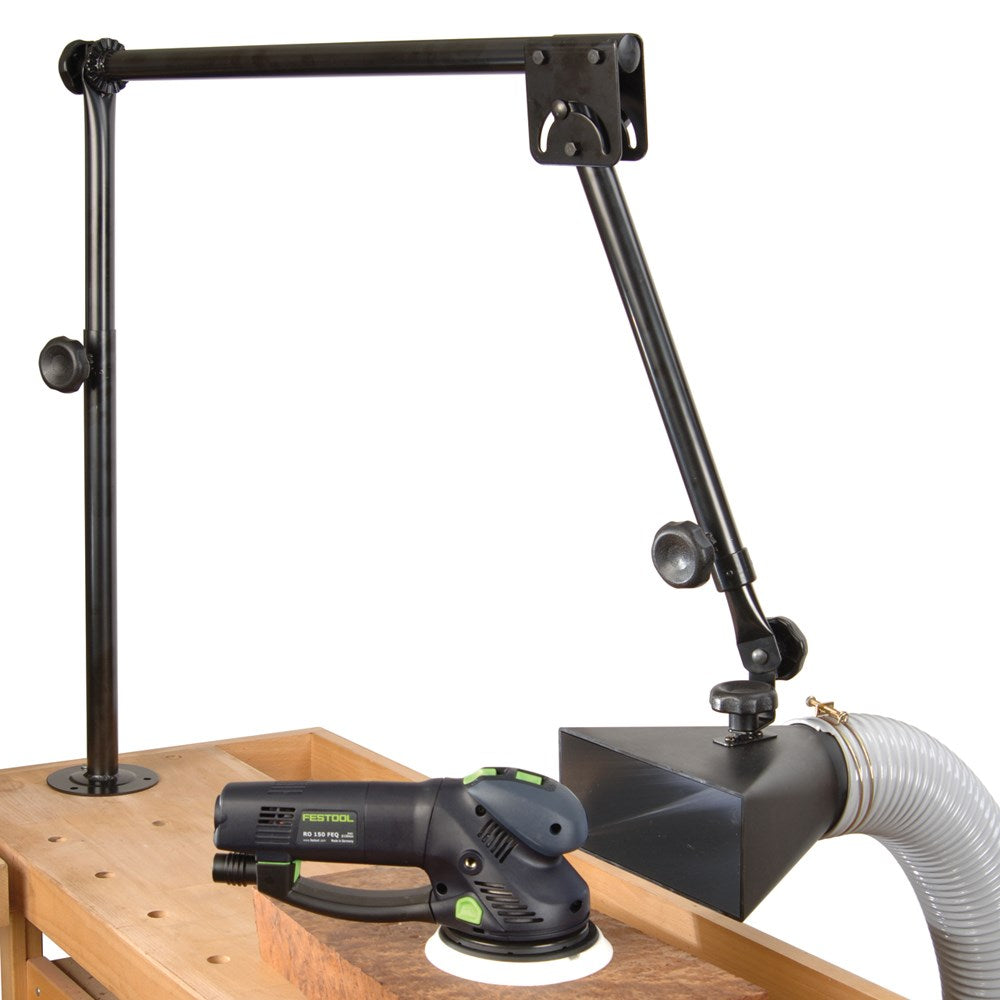 Holds a 100 mm x 254 mm dust hood where it is needed. .Attaches to a wall or bench. Arm adjusts 1. 12 m vertically and 1. 52 m horizontallyPivoting and locking mechanism allows you to position the arm where it is neededExtractor and hose not included