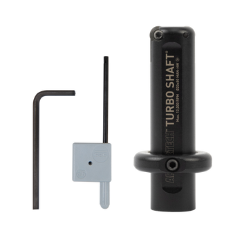 Arbortech's TURBO Shaft has revolutionized power carving and sculpting in timber. Designed to attach to most standard 100mm (4") or 115mm (4½") grinders with an M14 spindle thread (M10 requires an adaptor kit sold separately), this tool quickly removes waste material while leaving your masterpiece intact. Perfect for both freehand and template work, it is ideal for roughing out shapes before finishing with traditional tools, or completing projects entirely with the TURBO Shaft.