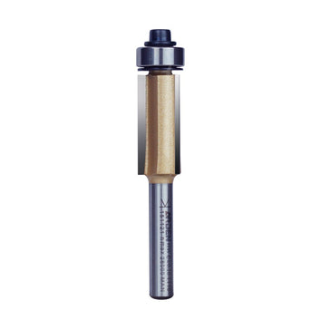 Pattern following bit used when following patterns or templates to give an extremely smooth finish using the three flute configuration. When making shaped objects such as scalloped edges, oval or roundtable tops, simply make a pattern out of material such as plywood for the bearing to follow. Also popular for laminate trimming.