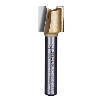 Router bit with two carbide flutes for cutting clean hinges and mortices. The design allows for plunge cutting making it a great choice when cutting in hinges and stair treads for example, or general routing where a flat bottom is required.