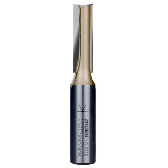 Straight router bit with two carbide flutes for use in grooving, rebating and mortising. Ideal for use with timber, MDF, chipboard and ply. Suitable for shallow plunging into softwoods.