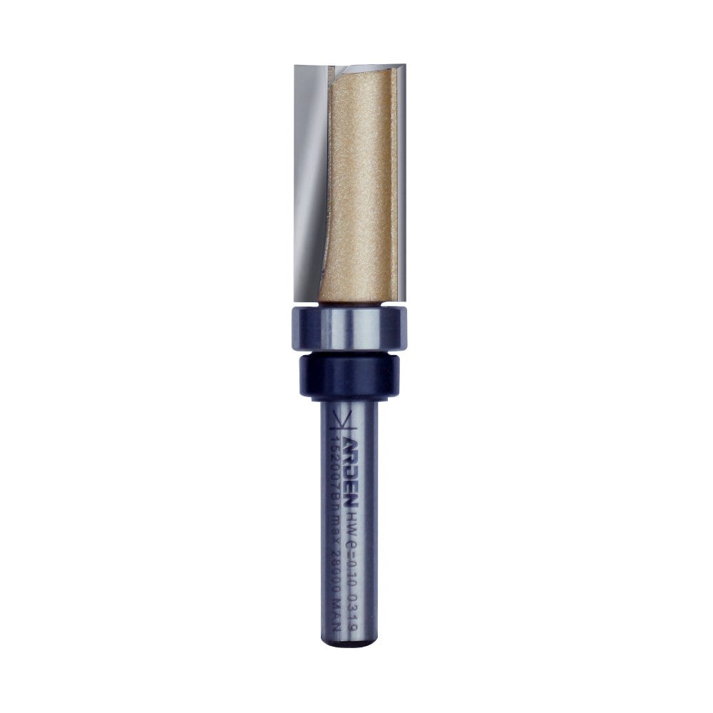 Two flute carbide tipped cutter with enclosed bearings. The top mounted bearings, and lower cutters makes for easy template routing with the router being positioned on top of the workpiece allowing for full router control.