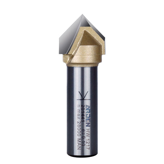 Two flute bit, ground from one piece to a 90° point, ideal for sign making and adding detail and decorative accents. For use in routers hand held, mounted in a router table or CNC.