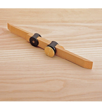 Gauge head openings are 1/2" × 3/4"; you just rip 1/4" slices off standard 3/4" lumber to make bars of the length you want (wood is not included). Made of brass and ABS plastic. Two brass pins are included for transferring inside or outside measurements smaller than the length of the sticks or for transferring outside measurements without making hook tips.