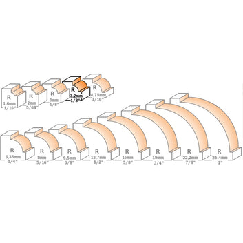 The CMT beading bit uses a smaller bearing than a round over bit to produce an extra inset bead along the lower edge of the cut, to create a detail otherwise not achieved with a standard round over bit.
