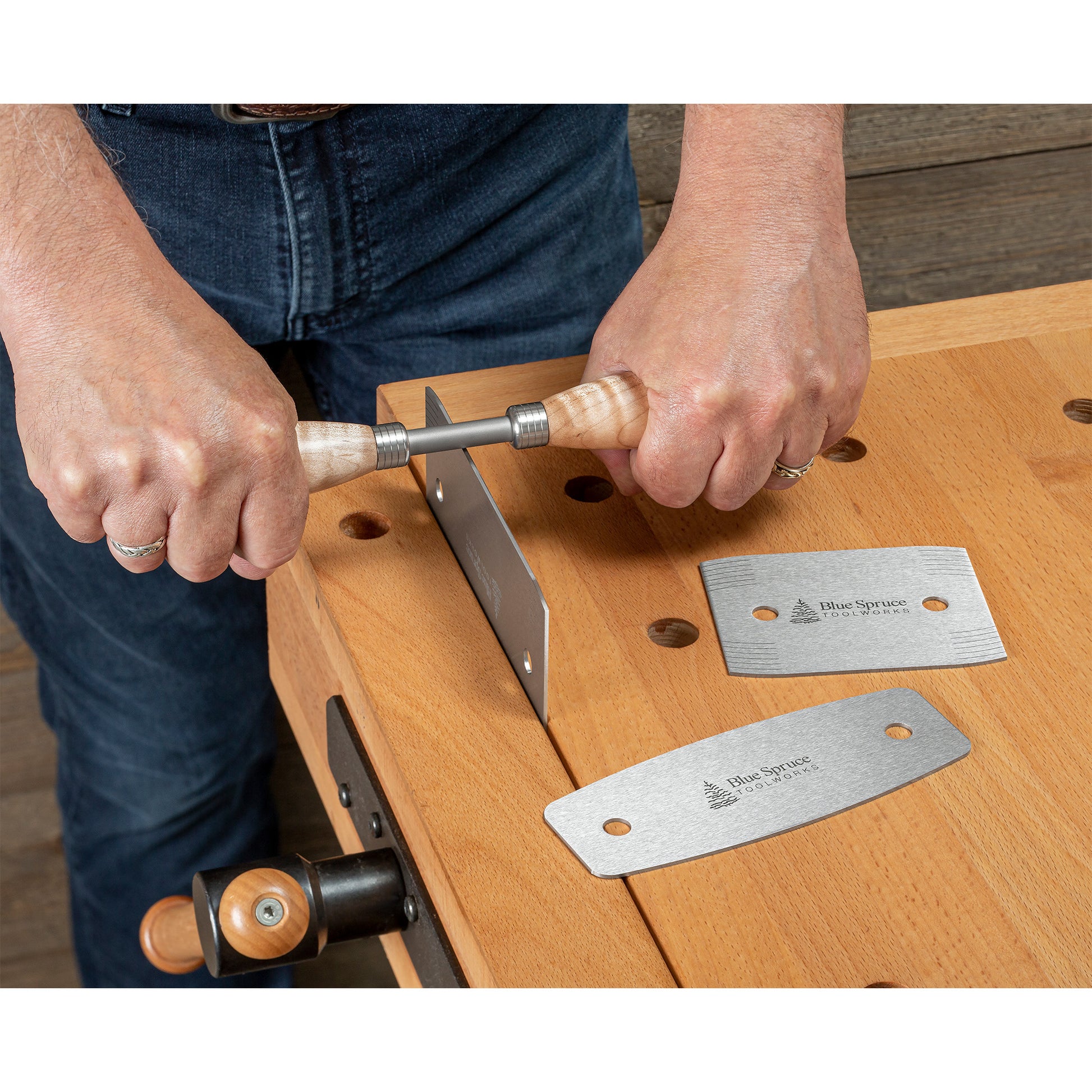 If you've struggled to sharpen traditional, thin card scrapers, the Blue Spruce Toolworks Solid Carbide Burnisher is your solution. Even experienced woodworkers will appreciate the unique features of this burnisher. Made from 9.5 mm solid carbide, it pulls a consistent, razor-sharp hook faster and easier than any other material tested.The dual-handle design in resin-infused Figured Maple provided both durability and comfort. This burnisher ensures precision and efficiency, making your woodworking tasks smoother and more enjoyable.