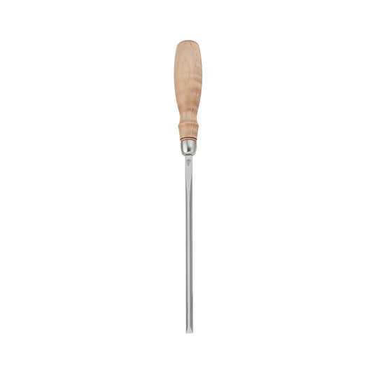 The Optima Paring Chisels from Blue Spruce Toolworks, are essential for finishing touches on your woodworking projects. These thin, flat, and long chisels are perfect for shaving tenons and dowels flush, and trimming dovetails and box joints true and level. The 171 mm blade provides excellent control and balance, while the concave side bevels allow access to tight corners.Each chisel features a lapped and polished back, ensuring unmatched edge sharpness. Made from A2 tool steel, they are double-tempered and cryogenically treated for exceptional edge retention. The chisels are razor sharp and ready to use straight out of the box, with no need for additional sharpening.The Resin-Infused Figured Maple handle fits comfortably in most hands. These chisels are a versatile addition to any woodworker's toolkit.