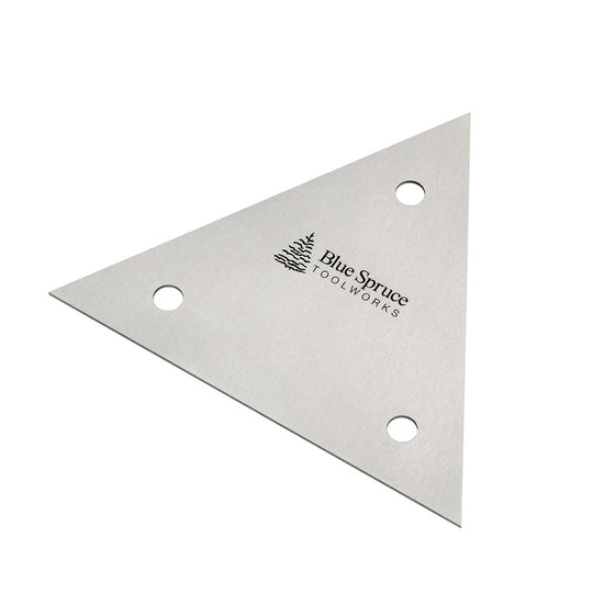 There are endless challenges when it comes to finishing wood. First and foremost is getting the surface smooth. On top of that, grain direction, plane adjustments, and tear-out all present their own obstacles. It's a daunting enough task on straight-grained, clear timber and even trickier on figured wood. Blue Spruce addressed these problems with a fresh take on classic card scrapers. Blue Spruce Triangular Card Scrapers are perfect for digging into those corners and tight spaces. They have implemented all of the same great features of their rectangular scrapers, but in an option that gives you the flexibility to get into finished casework, clean up glue squeeze-out and hug shoulder lines, all with ease. These scrapers have an extra-thick .062 thick profile thats up to twice as thick as other scrapers on the market. The blades resist flexing and will result in a flat surface free of divots and scallops. That profile means this is all achieved with less technique, less grip strength, and less resharpening.
