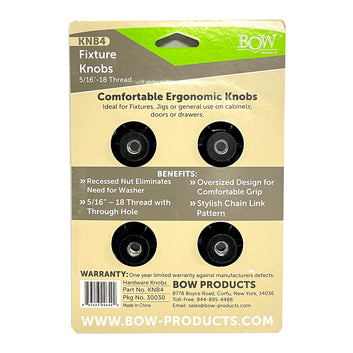 This 4 x pack of Knobs from Bow Products are the very same 2020 updated robust knobs found on their GuidePro, FeatherPro, FeatherDuo and more.Made available in this pack for making your own jigs, these knobs feature a female 5/16" hole-through thread.Very solid and ergonomic, these knobs are a great choice and excellent value.