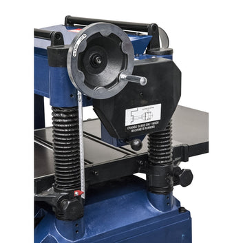 - Enhanced Productivity: A clever top-mounted roller system allows you to send timber back for repeated passes without having to carry it back to the infeed side. Paired with a 2-speed gearbox, this feature streamlines your workflow, making repetitive thicknessing tasks quicker and less physically demanding.