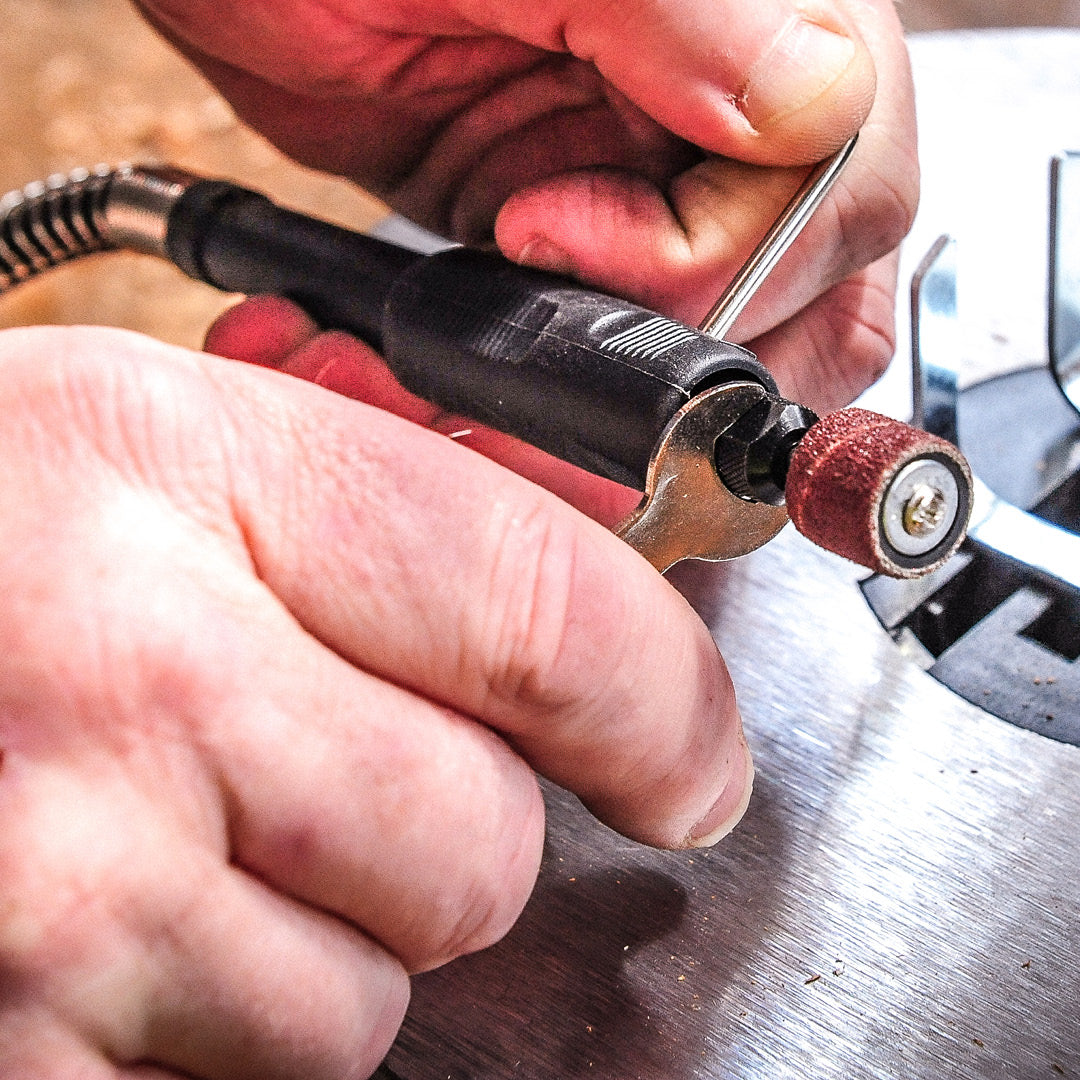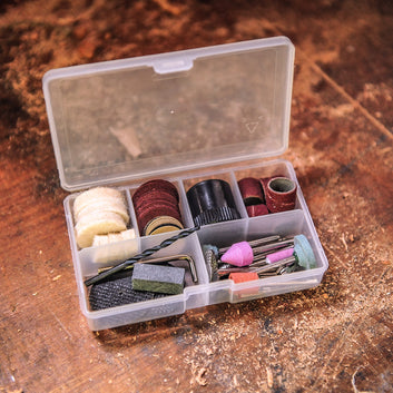 • Complete cutting solution:  Includes rotary tool with full tooling set for finishing touches, plus accepts both pinned and pinless blades