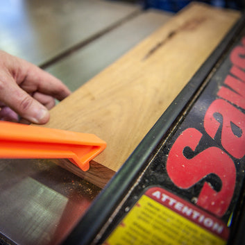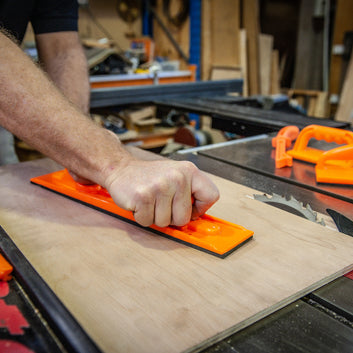 An important woodworking rule is to keep your hands well away from a moving blade, is the easiest way to avoid an accident and costs nothing. It's one of the first things that you learn about, and unfortunately, it one of the last things you forget to do, immediately before and accident. That said, there are occasions where the need to safely support and control your workpiece, and specifically when the need to get 'up close and personal' to the moving steel cannot be avoided. Controlling smaller sheet products requires good downward pressure on a table saw, where very thin rip cuts can leave a projectile jammed between your blade and fence (unless it's pushed past the danger zone). Consistent pressure against a fence on a bandsaw and jointer, ensures a square cut, as does consistent downward pressure on the flat face of a jointer, when flattening a board. Pushing any product through a blade needs carful thought and safety measures (one slip could change your life forever) The Carbatec Push Block & Stick Pack includes 5 various blush blocks and sticks, for almost every occasion. Two separate neoprene faced push blocks, with different handgrips and offsets, for different applications and perfect on Bandsaws, Table Saws and Jointers. The two-handed push block is great on the table saw too. Traditional handled push stick for general use, and a thin rip push stick for those tricky operations where blade and fence are close. Their plastic construction makes them non-marring and non-damaging to your blades (just think… that could have been your finger!)