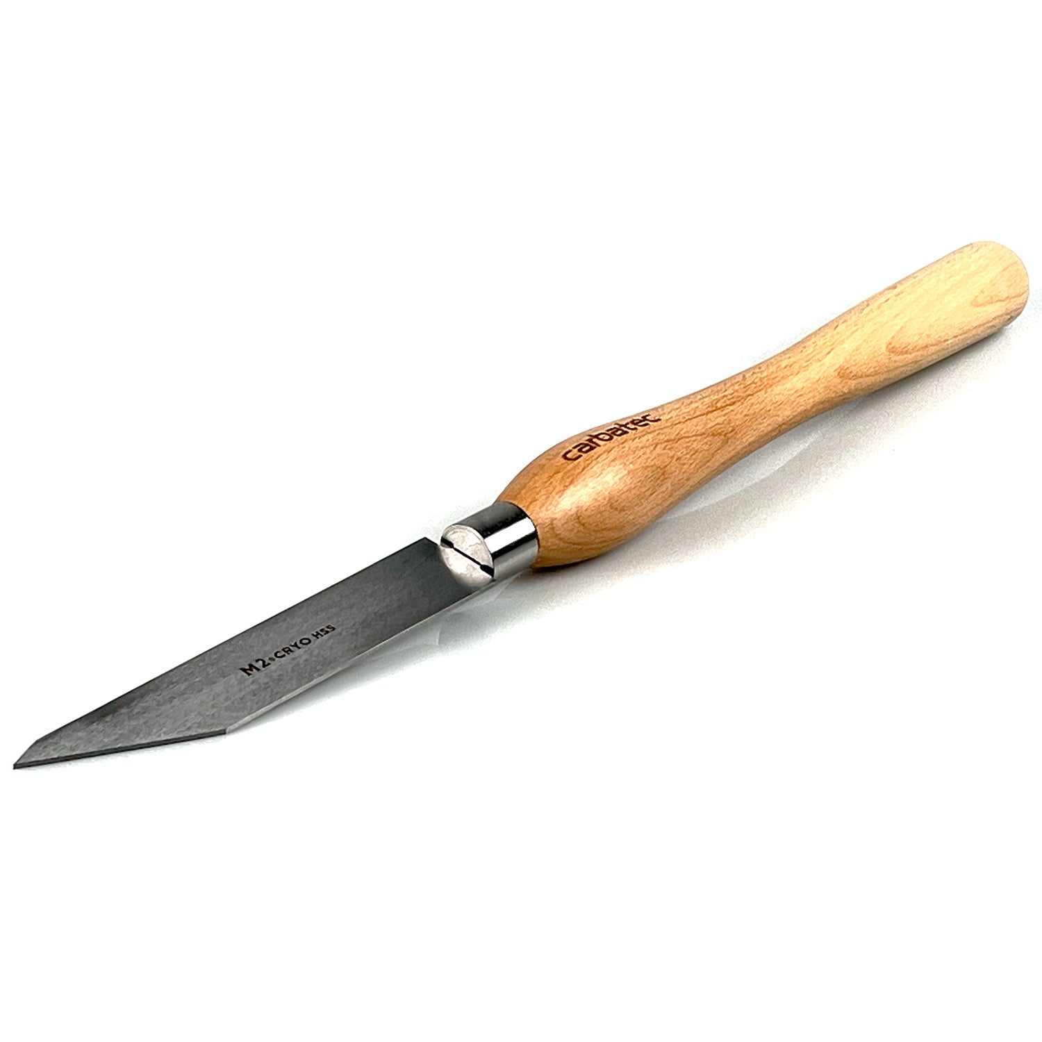 Introducing Carbatec's Next Level Woodturning Series!Building on the success and extremely positive feedback for our Carbatec Cryogenic Woodturning Sets, we are pleased to offer you an expanded capacity lineup of individual chisels! Featuring the same high quality Cryogenic M2 HSS, with 63-65 Rockwell lasting 2-3x longer than regular M2 HSS, these chisels offer a way to expand your turning capacity. We listened to turners needs and requests to develop and release these new individual tools. This new range feature a number of larger tools for heavier or bigger projects, along with a few more specialised tools not found in our sets. * This tool is "Euro Style" Parting tool, 2. 3 mm Thick x 32 mm in Diameter. That is heavy support on the vertical, for the fine parting edge action. Cryogenic treatment of M2 HSS means this steel has been subjected to a complex immersion procedure at temperatures as low as minus 195C. Sounds fancy (and cold!) but what does this mean? This treatment actually changes the structure of the steel, producing an ultra-fine and hard martensitic structure, supported by fine carbides. Erm, yes. .. And in plain terms? Additional wear resistance and edge holding capability of approximately 2 to 3 times that of regular M2 HSS !! Now that's an impressive edge!As per our sets, these tools feature Stainless Steel Ferrules, along with solid and smooth European Hardwood handles. * With the exception of the ever-popular 12 mm sized Bowl Gouge found in CT-WTC-6CT-CRYO due to popular demand!