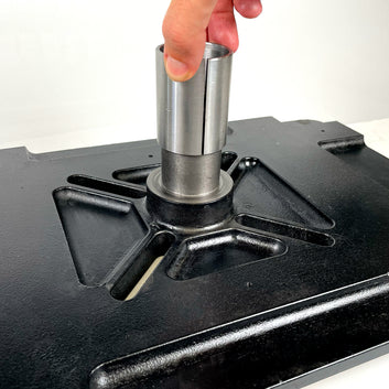 Designed in Australia exclusively for woodworkers, this oversized cast iron drill press table measures 500mm x 330mm, providing stable support for larger timber stock. The flat underside allows easy clamping anywhere, while T-slot mitre tracks and multi-size T-Tracks accommodate a wide range of jigs, clamps, and accessories. A central slotted “X” with removable 8mm nylon insert protects the table and allows mounting of drill press vices.