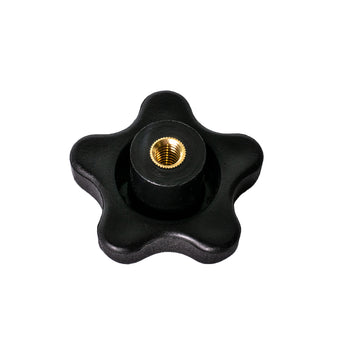 Carbatec's range of quality hardware knobs, handles, inserts and bolts, are perfect for shop made custom jigs, creating purpose-built hold downs, slides, tools and many other handy inventions in your workshop. They are also great for topping up your jig hardware kits, or replacing the odd lost knob or T Bolt from many different accessories. Available in small pack sizes (quantity depending on type of hardware). The Large Star 5 prong Knob is 56 mm diameter with 5/16" x 18TPI threaded nut. Knob has a fully open hole, so using longer bolts is no issue.