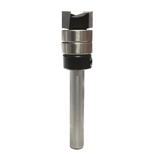 Standard replacement bit to suit Carbatec FM-78 Hinge Mortise Jig, but useful for many other jig following applications. Special design double bearing for a positive support against jig edge guides at any depth. Cut depth per pass is limited to ~1. 5-2 mm to assist with clean cuts and proper chip ejection. Standard 1/4in Shank and 12. 7 mm (1/2in) cutting diameter.