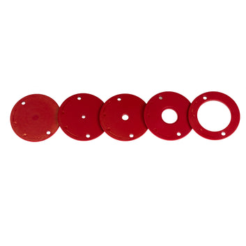 These plastic inserts will fit the Carbatec Router Lifts, and Carbatec Aluminium Mount plate, and allow you to change the diameter of the hole, as you change the diameter of your router bit. The 30 mm insert will also accept standard-sized template bushes (ie: Leigh Guidebushes and Carbatec brass bushes etc. )Includes 5 inserts: Zero Clearance, 6. 4 mm 12. 7 mm, 30 mm & 63. 5 mm. An insert with an inside diameter of 38 mm is supplied with the Mounting Plate, and Router Lift.