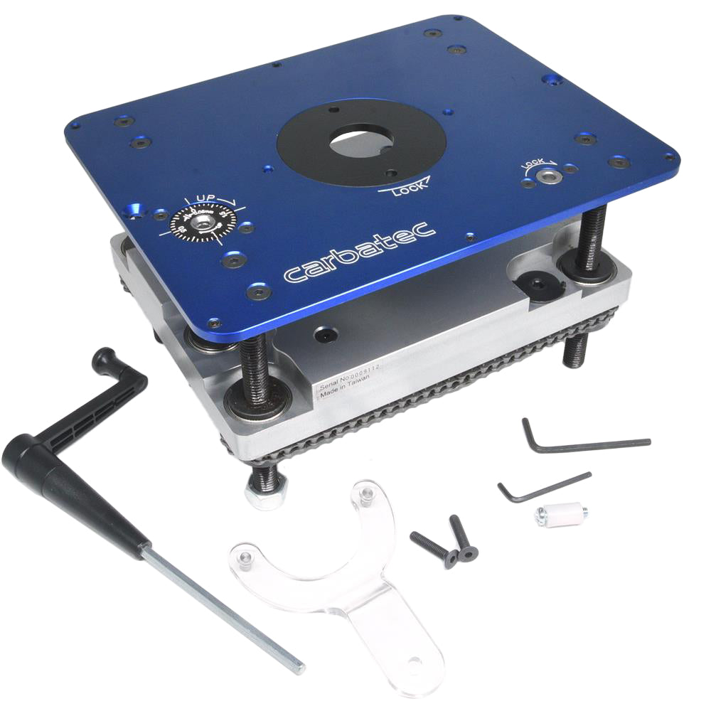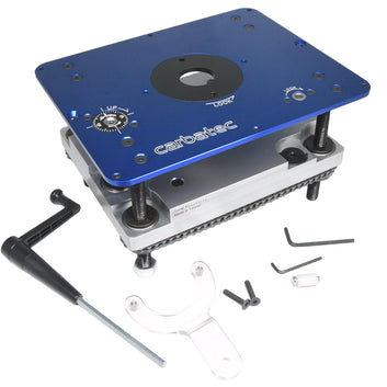 Take control of your router table with the Carbatec Lift N Lock Router Lift, designed for precise, hassle-free woodworking. Say goodbye to awkward under-table adjustments and fumbling with locks. This lift lets you make quick, accurate cutter height changes from above the table, saving time and frustration. It locks securely in place for consistent, repeatable results. Pair it with our RT-RPU2400 Router Power Unit or a similar fixed-base router to achieve new levels of accuracy.