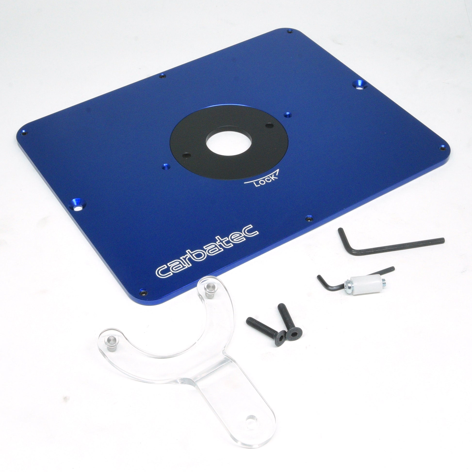 The Carbatec Aluminium Router Mounting plate is a great solution for mounting plunge routers to your Carbatec Compact or Pro Router Table (MDF, Phenolic or Cast Iron). The 6 mm anodised plate is solid and stable, and is a universal fit for all routers. The Carbatec mount plate is supplied undrilled, so will require you to centre, countersink & drill to allow you to mount your chosen router. The plate comes with a centering template to assist in mounting. NOTE: You will need to provide the correctly threaded screws to mount your routers base. Find a copy of the mounting template in our Video & Downloads tab. This plate Fits Kreg and many other router tables. An optional five piece set of router table inserts are available, with the standard insert having a 38 mm inside diameter.
