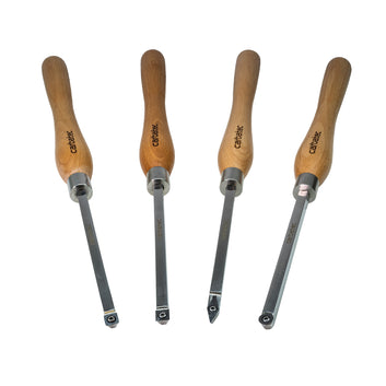 This versatile 4-piece scraper set is ideal for woodturners working on midi and full-size lathes. It excels at a range of tasks, from turning pens and craft-based spindle projects to shaping bowls and other vessels. Its design offers you fine control, making it easier to achieve a smooth, professional finish on your work.