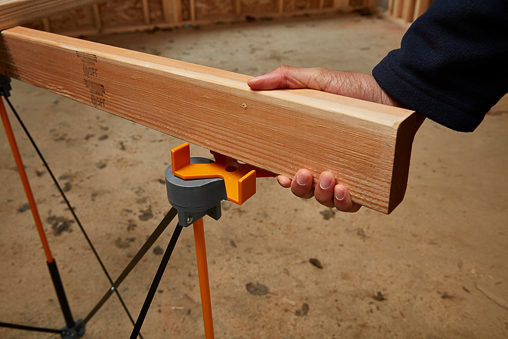 The BORA Centipede Support System is the ultimate portable workbench or table base. A heavy duty steel stand that sets up in seconds to support thousands of pounds and folds down into a compact, lightweight unit for easy transport and convenient storage. Featuring a unique steel frame design, the BORA Centipede Support System is constructed of multiple steel struts that rest directly between the load and ground to support an incredible amount of weight while keeping even the thinnest sheet materials from sagging. Each strut is moved in tandem with a series of flat steel cross bars flexible enough to absorb impacts and durable enough to ensure long-lasting smooth operation. Durable polymer P-Tops atop each point of contact provide a work surface that will not mark loads while avoiding contact damage between cutting blades and steel struts. Each P-Top is replaceable and spins 360 degrees to accommodate use of a variety of accessories.