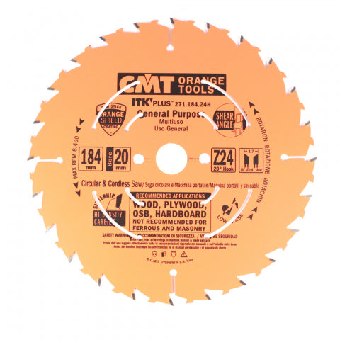 271.184.24H - Ultra ITK rip & crosscut blades allow you to produce excellent finish cuts in the shop, on the job site or wherever quality cuts are critical.