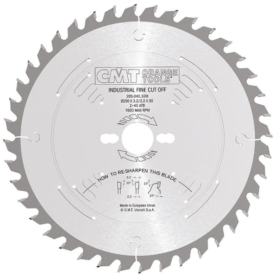 285.084.10M - With 48 teeth and a diameter of 250mm, this is an excellent choice for ripping and cross-cutting timber on a tablesaw or specialty saws such as radial arm saws or portable machines like Sliding Compound Mitre Saws.