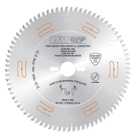 283.680.10M - The ideal blade for the industrial workshop with slots laser cut, and filled with a special noise and vibration reducing material. Designed for use with tablesaws or Sliding Compound Mitre Saw/Compound Mitre Saw.