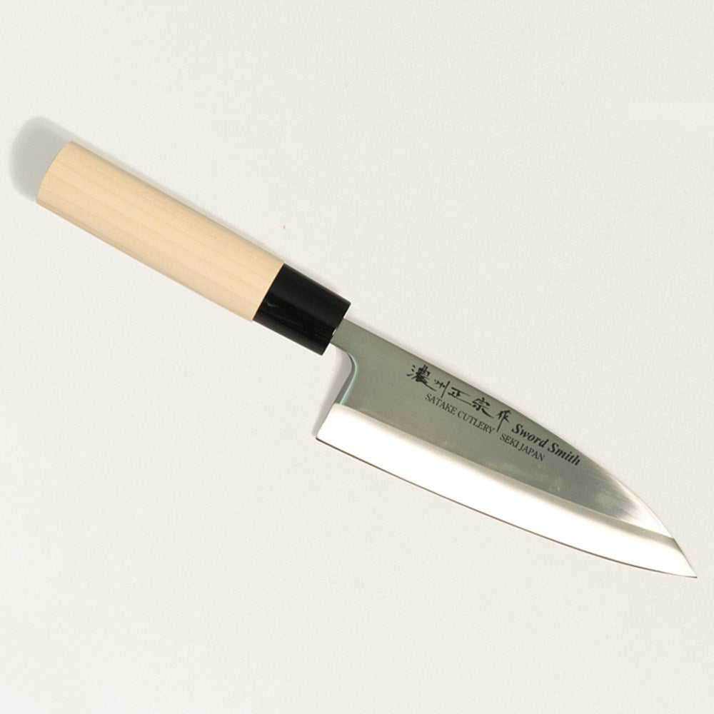 Its design makes it good for beheading and filleting fish, with its thickness, and more obtuse angle on the back of the heel allow it to cut off the heads of fish without damage. The rest of the blade then rides against the fish bones, separating the fillet. The Deba knife is not intended for chopping large diameter bones.