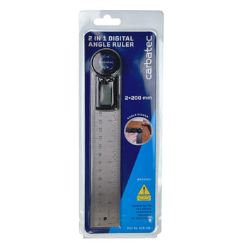 Carbatec's Digital Angle Ruler offers both a way to measure angles with exceptional accuracy, measuring from 0 degrees to 360 degrees in 0. 1 degrees increments. The digital display can be zeroed at any location giving the user the chance to measure between specific angles. The mechanical lock then prevents further movement once the desired angle is reached. Overall length: 400 mm open, 200 mm when folded. Includes three volt CR2,032 lithium battery (not installed) and an anti-tamper battery enclosure. THIS PRODUCT CONTAINS A BUTTON BATTERYIf swallowed, a lithium button battery can cause severe or fatal injuries within 2 hours. Keep batteries out of reach of children. If you think batteries may have been swallowed or placed inside any part of the body, seek immediate medical attention This product is designed for professional / workshop / jobsite use. Keep out of reach of children.