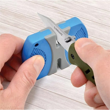 Featuring V-slots in Tungsten and Ceramic, this handy device has non-slip pads and is super lightweight for sharpening on the go!Run your dull blades through the coarse Tungsten V-slot before moving on to the fine Ceramic V-slot to finish the job. With a dual-injected, textured, rubberised grip and non-slip pads, using this handy sharpener, even away from flat benches is possible. The options are nearly endless on this one-of-a-kind, convenient tool.If all the sharpening options weren't enough, the PocketSharp also has a handy beaded chain to keep it secure. Get in quick for these!