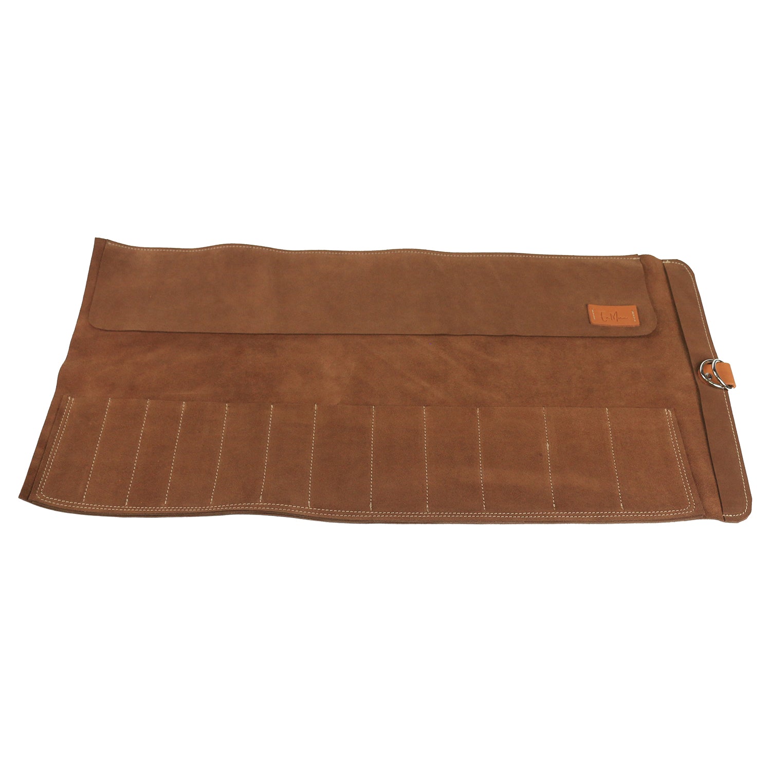 En Mina Leather products are individually handcrafted from premium Australian leather on the Sunshine Coast of Australia by Isabel.Proper storage and care for your tools are paramount to their longevity and performance, and you won't find a better option than En Mina's Leather Tool Rolls! Leather pouches, sheaths, rolls and wraps are not a new idea. In fact, they've protected tools for as long as we've been forging them and for good reason - they are the perfect combination of a simple yet effective solution. They look beautiful, feel beautiful, and excel at protecting your tools against the natural elements and keeping the razor edge protected against nicks in storage. They age well and, looked after, they will provide you with many, many years of service.This Chisel Roll is made of high-quality Australian suede leather, with a soft feel and supple ability to roll up. Designed for cabinet chisels and with 12 pockets, it will hold a range of sizes up to 42mm wide x 285mm in length. Fully opened, this roll measures 650mm wide and 320mm tall. A simple leather strap with twin "D" buckles completes the tool roll to bind your chisels safely away until needed next.There are many tool rolls on the market, but you'll be hard-pressed to find a higher quality example, and all the while, you can be satisfied you just supported a small local artisan's work. Supplied in an Australian-made cotton gift bag.About the maker - With a commitment to producing high-quality goods, Isabel hand-makes every En Mina Leather product individually. Quality manufacture starts with quality materials, so naturally, only the finest Australian leather is used. You also won't find any plastic here - all En Mina products are supplied in hand-made cotton bags, supporting yet another small Australian business! With attention to detail only found in individually crafted goods, En Mina Leather goods are the perfect gift for any woodworker.*NB: Tools not included