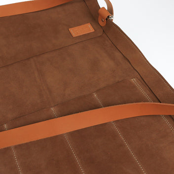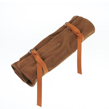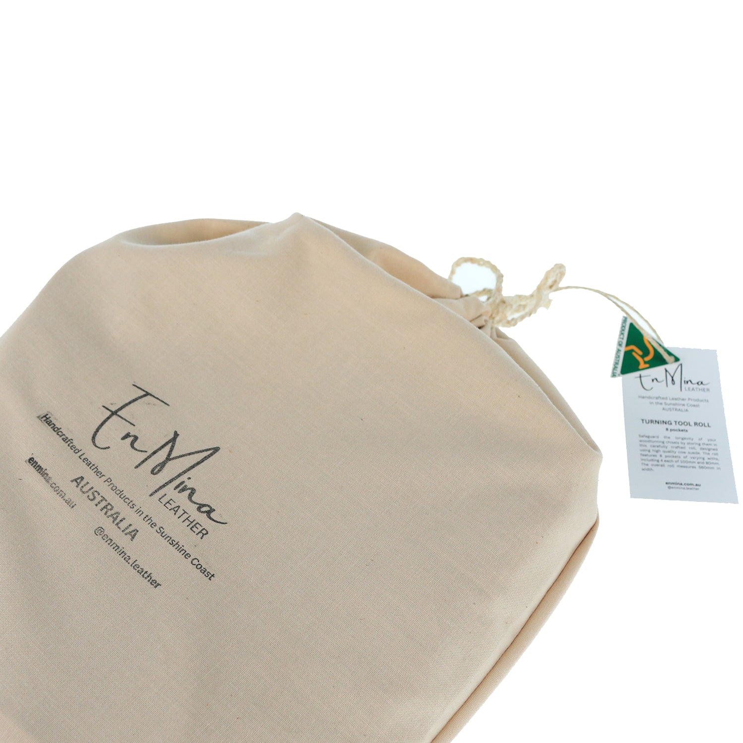 En Mina Leather products are individually handcrafted from premium Australian leather on the Sunshine Coast of Australia by Isabel.Proper storage and care for your tools are paramount to their longevity and performance, and you won't find a better option than En Mina's Leather Tool Rolls! Leather pouches, sheaths, rolls and wraps are not a new idea. In fact, they've protected tools for as long as we've been forging them and for good reason - they are the perfect combination of a simple yet effective solution. They look beautiful, feel beautiful, and excel at protecting your tools against the natural elements, as well as keeping the razor edge protected against nicks in storage. They age well and, looked after, will provide you with many, many years of service.This Chisel Roll is huge! It is made of high-quality Australian suede leather, with a soft feel and supple ability to roll up. Designed for woodturning chisels and with eight pockets, it will hold a range of profiles up to 540mm in overall length (depending on tool type). Fully opened, this roll measures a whopping 790mm wide and 550mm tall. It features two leather straps, each with twin "D" buckles to ensure your chisels are safely bound away until needed next.There are many tool rolls on the market, but you'll be hard-pressed to find a higher quality example, and all the while, you can be satisfied you just supported a small local artisan's work. Supplied in an Australian-made cotton gift bag.About the maker - With a commitment to producing high-quality goods, Isabel hand-makes every En Mina Leather product individually. Quality manufacture starts with quality materials, so naturally, only the finest Australian leather is used. You also won't find any plastic here - all En Mina products are supplied in hand-made cotton bags, supporting yet another small Australian business! With attention to detail only found in individually crafted goods, En Mina Leather goods are the perfect gift for any woodworker.*NB: Tools not included