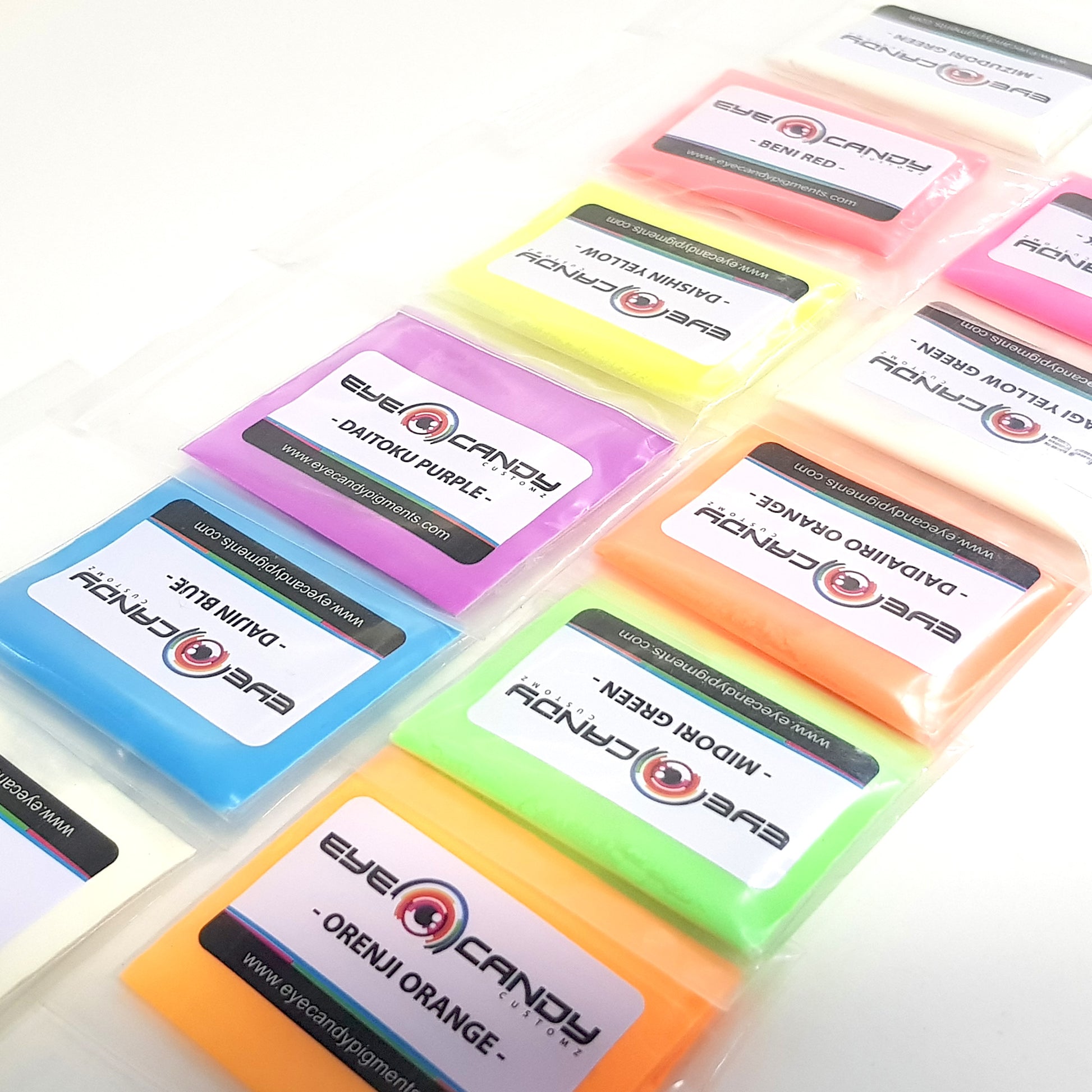 11 Colour Glow in the Dark Pigment Variety Pack!This set includes 11 colours in 5 gram packs - that's a massive 55grams of specilised glowing mineral mica! A little goes a long way.These specialised "Glow-in-the-dark" pigments feature an 8 -10 hour glow/burn each time. Colours included - Daijin Blue, Mizudori Green, Beni Red, Midori Green, Daidaiiro Orange, Orenji Orange, Momoiro Pink, Shojin Blue, Daitoku Purple, Daishin Yellow, and Asagi Yellow. Note that the colours create various opaque solid colour results as per the powder colour in daylight, but also glow in varying shades of blue, orange, green and yellow!Versatility – Our glow in the dark pigments can be used for cup tumblers, river tables, tinting, darkening, or brightening other mica colors making it ideal for use as a personal colorant. Ideal for DIY craft use, woodworking, plastics, slime making, homemade bath bombs and jewelry, melt & pour, lip balm, acrylic painting, screen printing, candle making, and more.NB - We recommend that you DO NOT use this for automotive paint. These particular pigments ARE NOT UV stable and should not be in constant sun for lengthy periods (days). Regardless of where or what brand of glow pigments you use, mixing will always take a little more effort than your typical mica pigments due to the fine quality particle size. ALWAYS test before full application!SAFE, NON-TOXIC, CRUELTY FREE - All our resin colour pigments are stain free, gentle on skin and won't cause irritation. However, as with any additive, we always recommend you test a small area before full use to ensure it allergy safe.