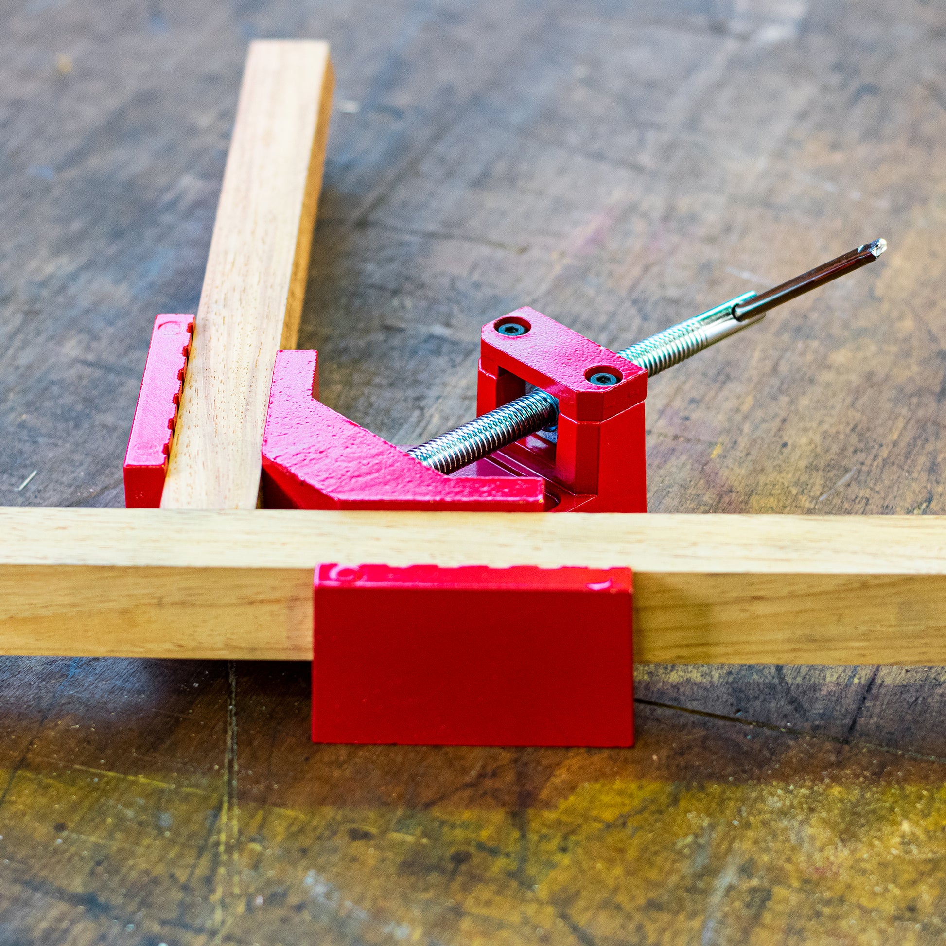 Adjustable jaw clamps timber at 90 degrees - Pivoting function allows for easy adjustments - Clamps timber of even or uneven thicknesses simultaneously - Perfect for oversized framing, cabinet assembly, forming T-joints, L-joints or mitre joints - Elongated holes included in the base allow it to affixed to a workbench or table - Maximum material thickness: 75 mm Package includes 1 x Internal Mitre Clamp