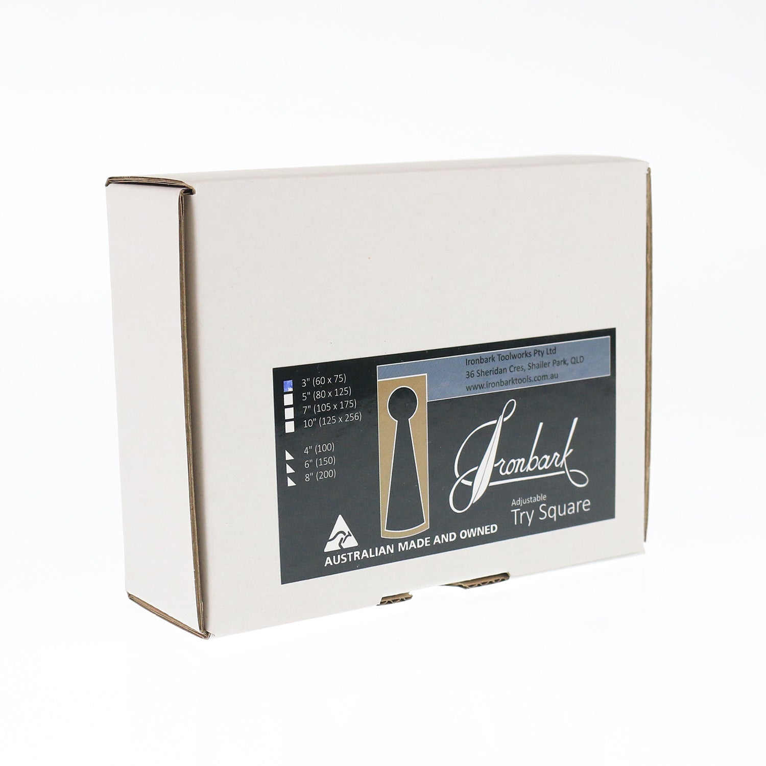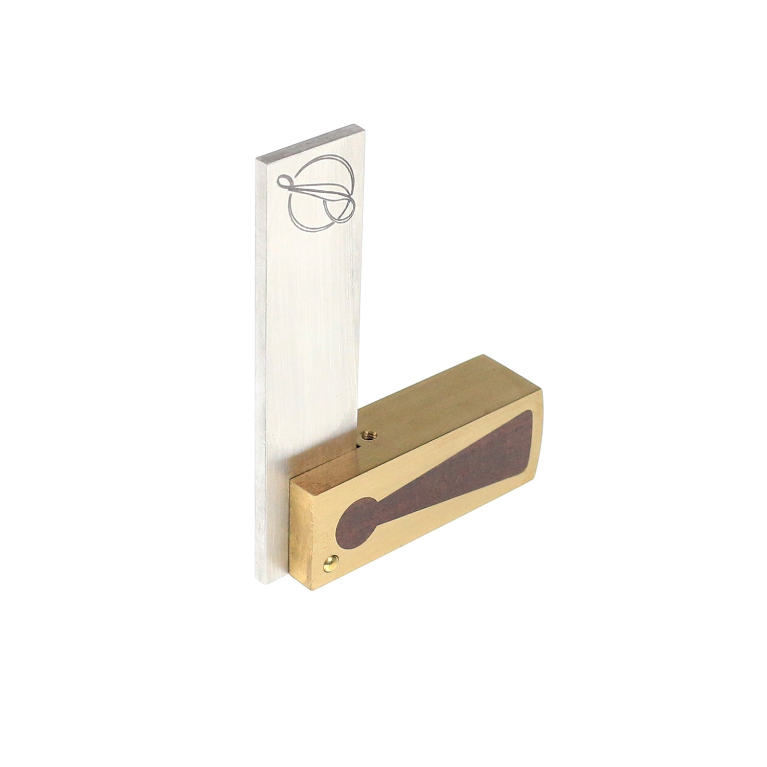 Ironbark Tools are individually handcrafted and feature Australian "Arid Zone" hardwoods in Brisbane, Australia.Quality squares are synonymous with quality woodworking. These squares are made from a solid 19mm x 16mm block of milled and machined brass, accented by a through 'keyhole' design with a solid timber insert. The species used in this case is 'Yarran' - Acacia homalophylla. This is an Australian 'arid zone' species, commonly called 'desert or outback' hardwoods, that weighs around 1275kg/m3. A hard-wearing, heavy and dense species, it is perfectly suited to the task, and its commonly dark brown tones contrast beautifully against the brass and steel.Critical to the design, the 19mm wide and 3mm thick milled 304-grade stainless steel blade/beam is adjustable - meaning that while it is set square on completion, in time, the square can be recalibrated and adjusted for perfect square throughout a lifetime of use. A laser-engraved Ironbark logo completes the beam. The feel and weight of these tools make them a pleasure to use and, ultimately, are an investment in the quality of your woodwork. Every workshop needs a square, and every woodworker will appreciate a quality, uniquely Australian handcrafted tool.The 90˚ Squares are available separately in four sizes: 3" (76mm), 5" (127mm), 7" (178mm) and 10" (254mm), referring to the blade/beam length. The stainless steel blade requires little maintenance, while brass tarnishes and develops a natural patina. This does not impact the function of the tool, and some prefer the naturally aged look, but it can be protected, maintained or restored with a little #0000 steel wool and furniture wax if you prefer a polished brass finish.About the maker - Passion for the woodworking industry, an eye for detail, and an appreciation of quality tools led Devon down a path of fine woodwork and working with many established names and businesses in the field. The culmination of this path eventually led to a desire to handcraft the tools required, and Ironbark Tools was established. Now displaying a range of tools at events throughout Australia and the USA, Devon is continually refining his craft and developing novel features in his tools, utilising a range of Australian and, occasionally, exotic timbers.NB*: This offering is only for the 3" (76mm) square. Other sizes are available separately.