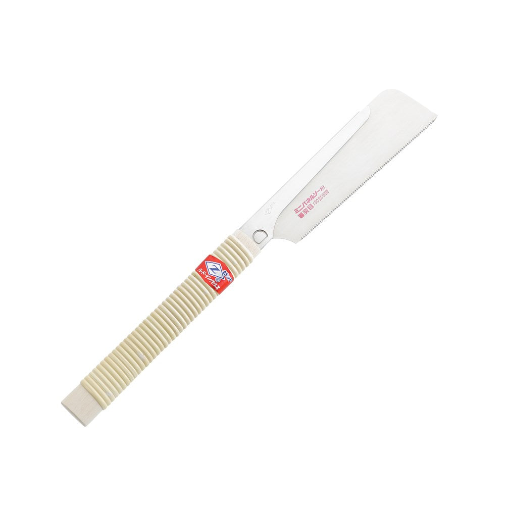 The Japanese Dozuki Pullsaw H-150 has a compact body with the finest blade in our Dozuki backsaw Z series. Ideal for extremely intricate and precise works on general wood materials. The maximum cutting depth of the blade is 38mm. This Fine Dozuki saw features a traditional Rattan wrapped handle that may be held with two hands for a steady cut or for small precise cuts by holding the blade end of the handle with the fore finger resting along the back of the spine. These saws are hardened through the "Hard Impulse" treatment to increase the degree of hardness to the level of HV800-950 which is the maximum hardness that can be achieved on steel. Implementing this treatment on the tips of the saw teeth means that they are able to stay sharp much longer than conventional counterparts while the core of the blade remains both flexible and tough to prevent bending or buckling during use.