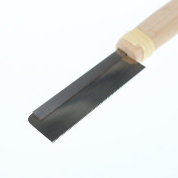 A Japanese made Razor Saw, with partly wratten bound Paulownia wood handle. This is an incredibly fine saw, only 60mm in blade length with a 0.1mm kerf. YES - 0.1mm!! With 42TPI cutting on the pull-stroke, it is designed for the most precise of cuts. Think model making, miniature joinery, exquisite Kumiko and more. If you want the slimmest cutting saw possible before a scalpel, you've found it!A high quality tool of a more traditional Japanese style, being that the blades on these fine saws are not replaceable. They will however, provide many years of exceptional cutting when cared for appropriately. Blade Length: 60mm. Overall Length: 182mm. Kerf: 0.1mm. TPI: 42. Weight: approxiamtely 200g.