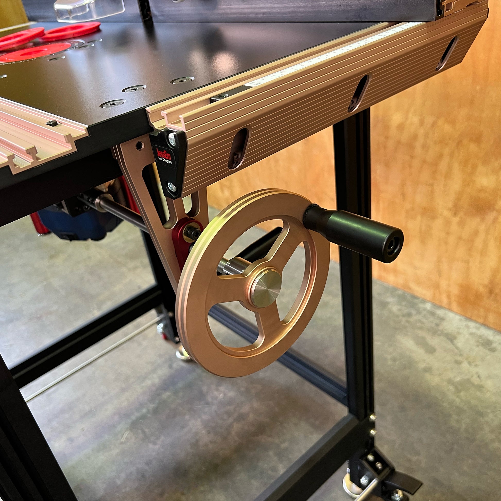 Excel II Top with Integrated Router Lift – Side-mounted winder allows precise height adjustments for full control