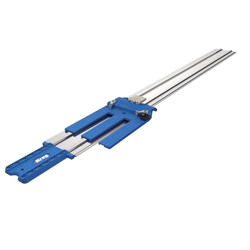 Accuracy in woodworking is the key to a good result, The Kreg Accu-Cut Circular Saw Guide Track System gives you this with just the addition of a hand held circular saw. The non-slip guide strips serve two purposes, firstly to prevent the track from moving throughout use, and secondly to use a a reference for positioning the track. Once the saw is fitted, the first use cuts the guide strips which is then used as a zero reference point for future cutting, which is where the accuracy comes from. The guide strips also are double featured, preventing chip-out on materials such as melamine, laminates and veneered board by the holding the delicate material down under the strip during the cut preventing it from lifting.