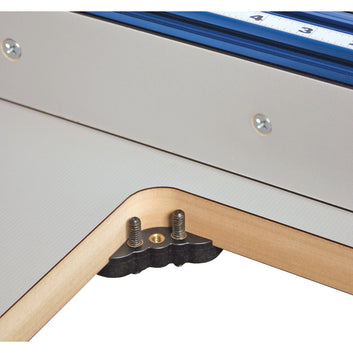 These levellers are the easiest and simplest way of fitting a router plate into a table. For mounting into tops up to 38mm thick, they simply screw to the underneath side of the top, and suit an internal corner radius of 19mm. Two grub screws in each corner plate are used to achieve the flush router plate in new router table, and a screw then is driven through the plate to secure it.