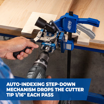 - Auto-indexing step-down mechanism lowers cutter in 1.6 mm (1/16") increments