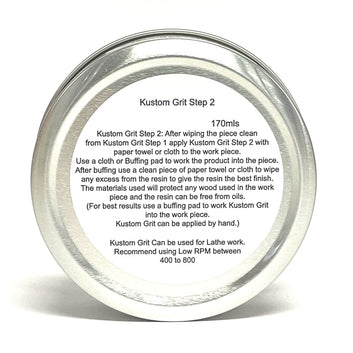 After sanding to desired grit, apply Kustom Grit Step 1 with paper towel or cloth to the work piece. Use a cloth or Buffing pad to work the product into the piece