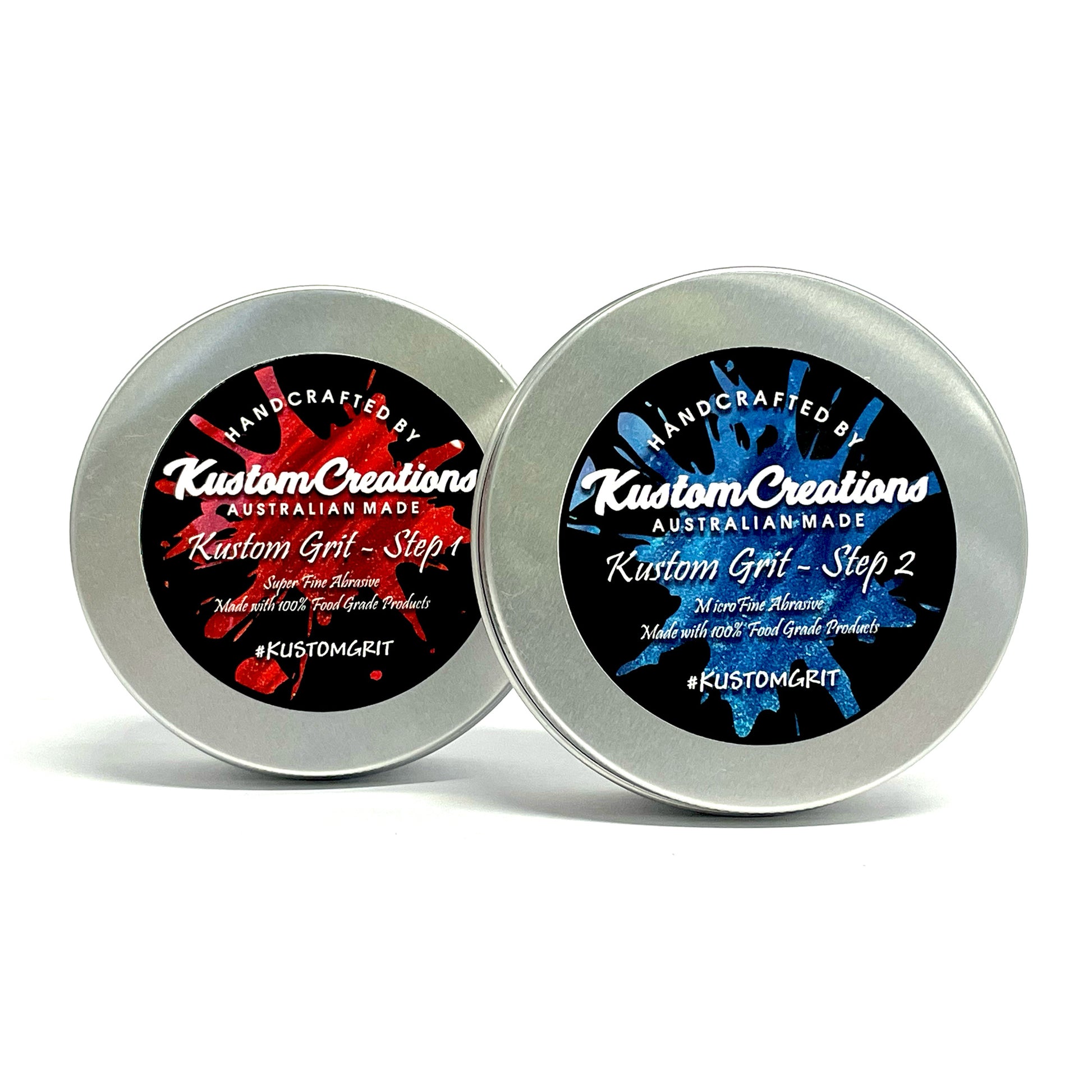 This set contains 1 x 170ml Tin of Kustom Grit Step 1 and 1 x 170ml Tin of Kustom Grit Step 2.