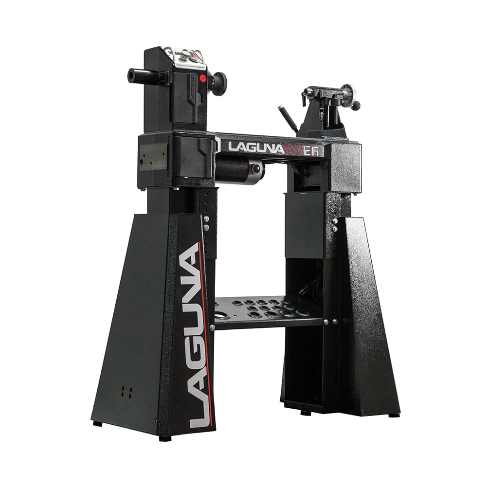 Never has a Midi Lathe been supported this well!This stand has been designed from the ground up, specifically for the Laguna 12/16 Midi-lathe. Adjustable from 990mm - 1143mm (39″– 45″) at spindle center to suit your preference and height. It is extremely robust and well constructed, turning your midi-lathe from a bench-top model into a fully stable compact floor mount woodturning station! Made from a heavy-gauge folded steel, with a wedge-shaped design and featuring an ergonomic tilted multi tool shelf, for keeping your most used tools ready at hand.Net Weight of the stand is a whopping 37kg (81 lbs) alone, making the Revo 12|16 mounted on the stand a combined 90kg (199 lbs). That is a serious, stable and heavy duty midi-lathe!*NB: Lathe shown for illustrative purposes only, not included.