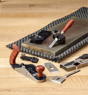 Not only for use with our miniature tools, the system is also a sharpening option for other small blades, such as those used with our flat detail palm plane and other small planes.Comes in a French-fitted leatherette presentation box.Made in Canada.