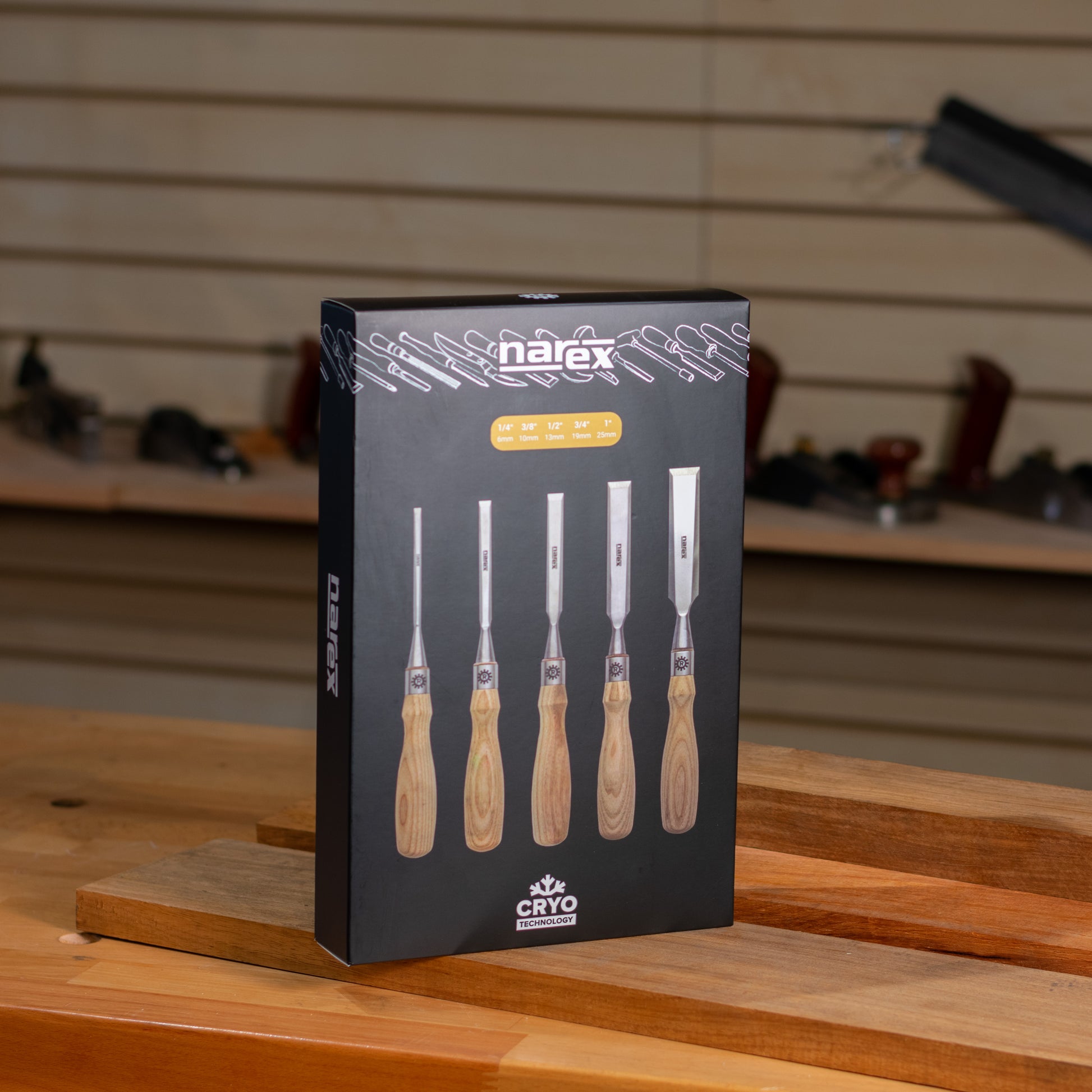 Narex Premium Richter Cryogenic 5pc Bevel Edge Chisel Set in Wooden Case
